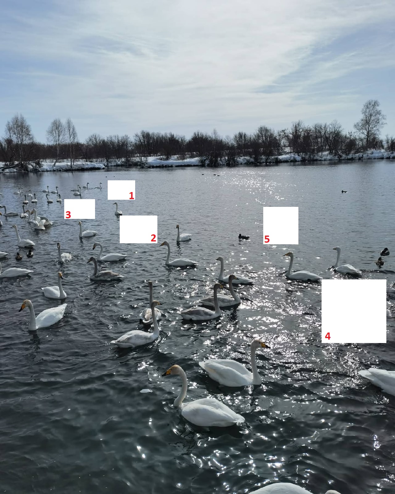 Закрашены несколько лебедей - всего 5 шт. И так, в каких закрашенных местах лебеди плыли влево, а в каких вправо?