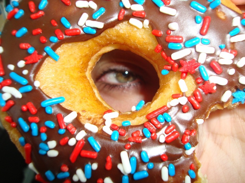 1. Через отверстие в бублике смотрела девушка.