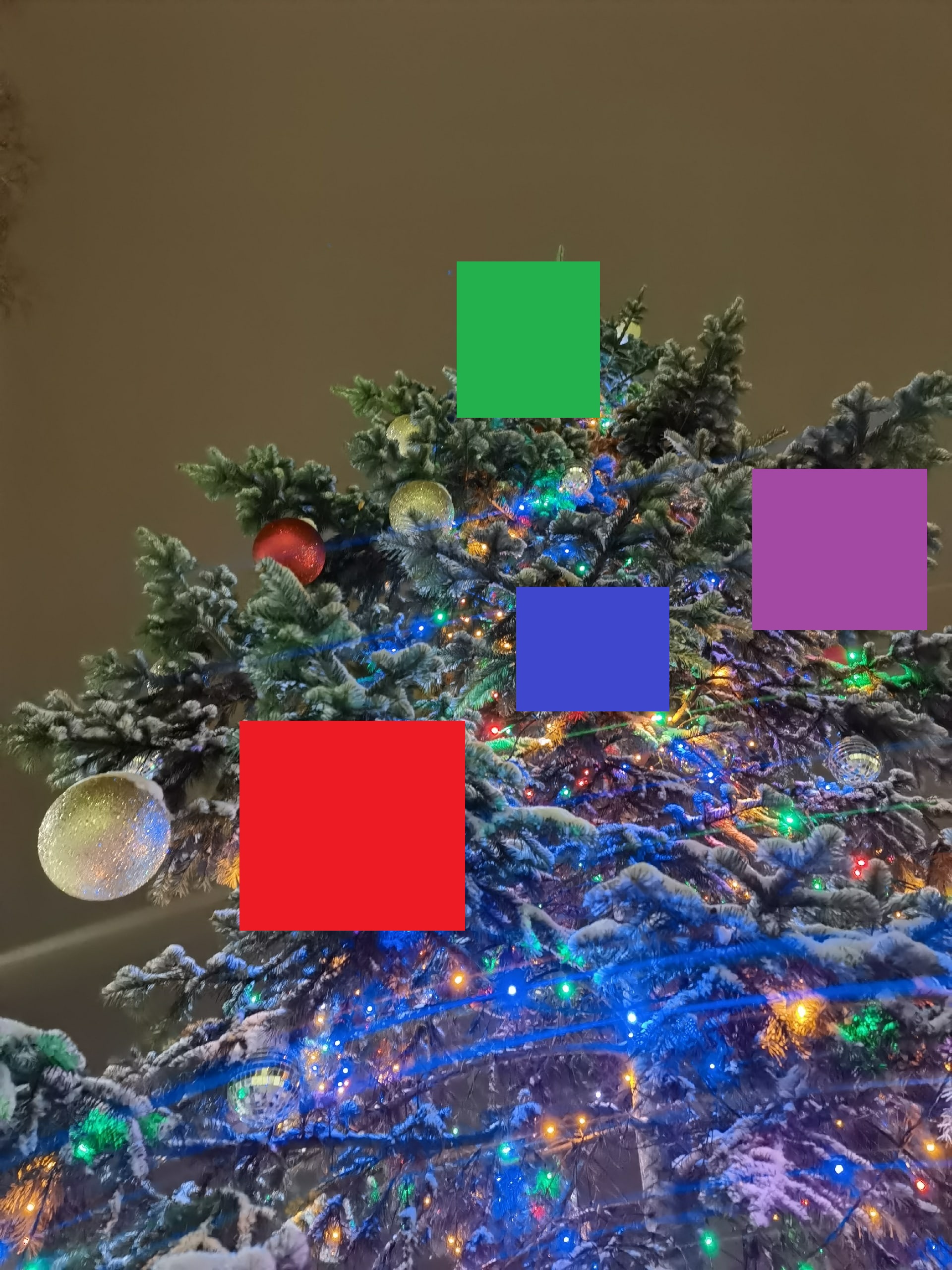 Красные шарики закрашены за зеленым и фиолетовым квадратами.
