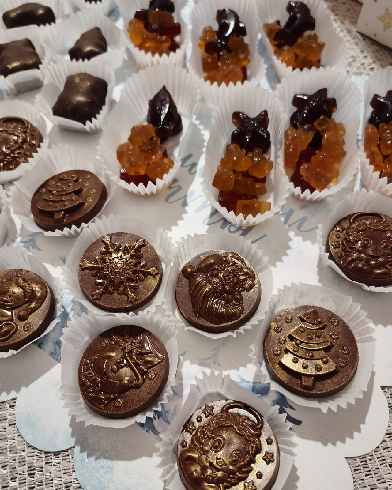 4) Найдите шоколадку где изображен дед мороз - самая нижняя