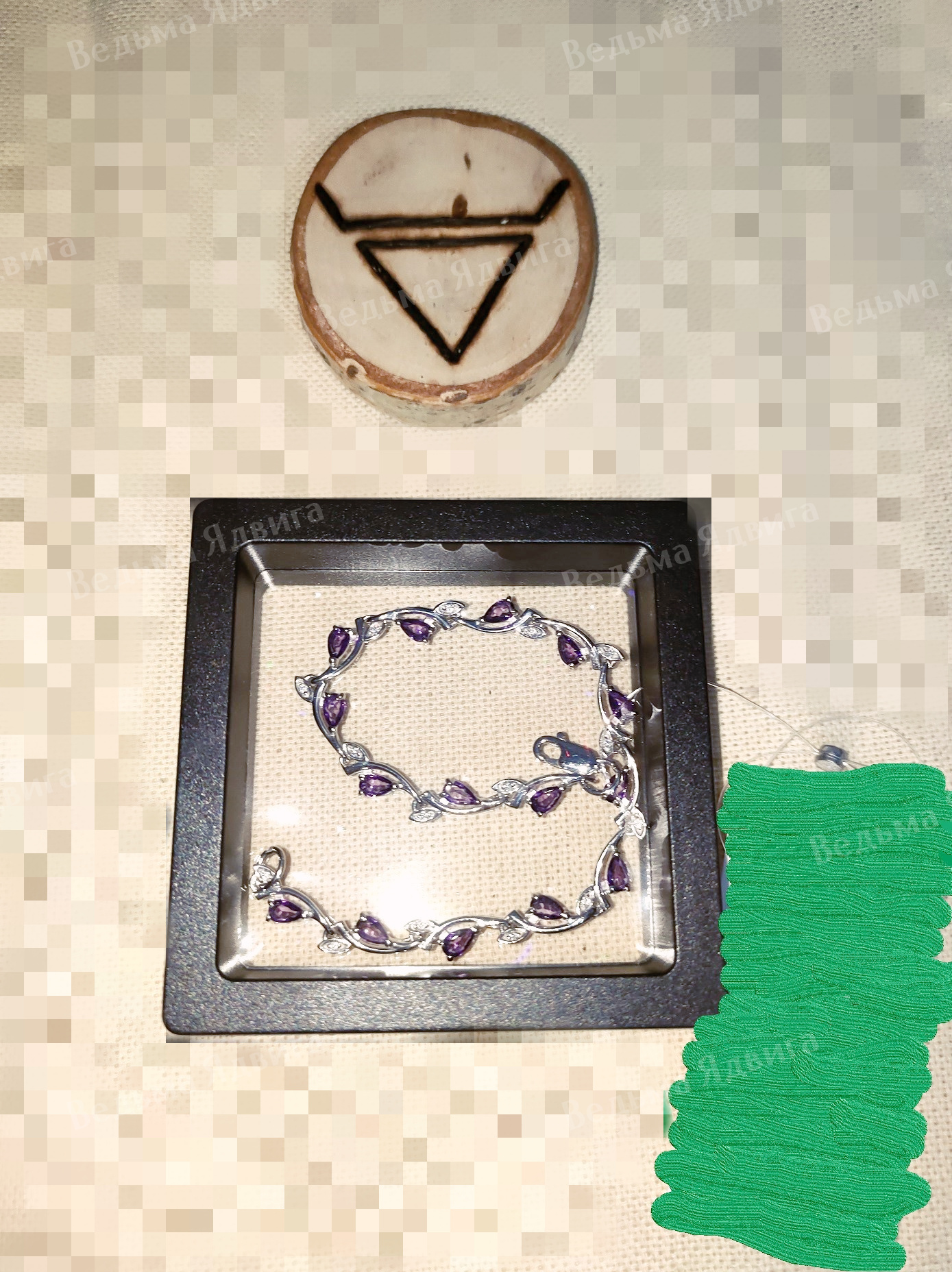 Эльвира777 - это была плата Богу Велесу в светлом обряде (Славянская Традиция). Плата за чистку. А вот делалось реально для женщины - даю 1 балл. Дары ещё, кроме этого браслета - были, тут даю 0,5 балла. Место, где было оставлено выбрано не верно. Итого за эту часть задания: 1,5 балла.