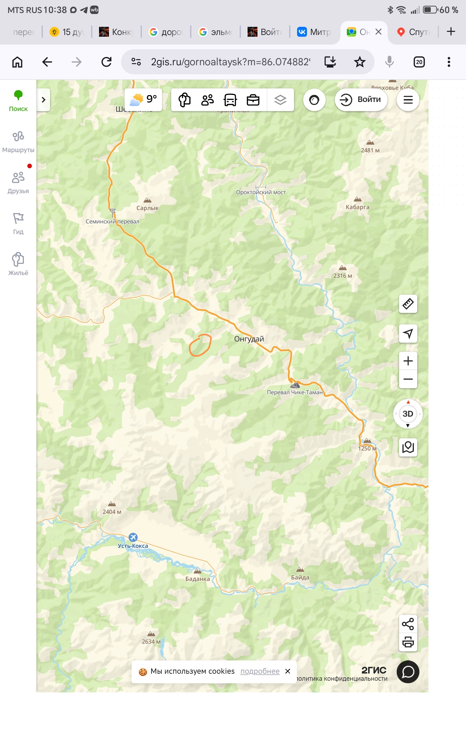 Идёт, что на фото, потом машина включила левый поворотник и поехала если смотреть по карте выше до Усть-Семы и там машина взяла правее в сторону Телецкого озера и далее к перевалу Кату-Яоык.