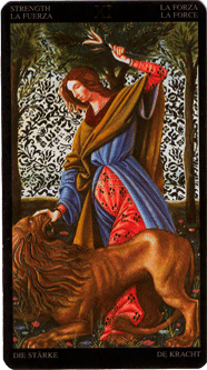 Восьмой Аркан символизирует внутреннюю силу, необходимую для преодоления препятствий, встающих на жизненном пути. Девушка, управляющая львом, и есть олицетворение силы воли, внутренней мощи, Высшей энергии, которая не требует для своего проявления активности на низшем плане.