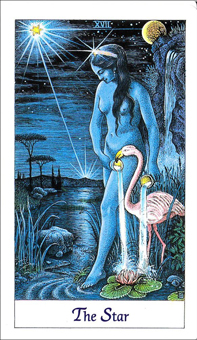 С другой стороны, вы можете сами оказаться звездой, купаясь в свете софитов и наслаждаясь признанием своей красоты и достижений. Эта карта может указывать на раскрытие таланта или на возможность "взять курс на звезду". Вы можете действовать красиво, уверенно и харизматично или отдавать, не задумываясь о награде. В плане отношений вас может ожидать идеализированная, необычная связь. В ведении этой карты находится ясновидение, а также прохладный, чистый свет творческого воображения и вдохновения, дающий шанс сделать нужное дело в нужное время. Вы можете ощущать, что через вас действует судьба или некие высшие силы. Изображенное на карте возлияние говорит о благословении, об очищении или благодарности. Это также переработка отходов, орошение и общее обновление "в источнике юности".