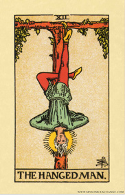На самом деле Повешенный говорит о полном и безоговорочном принятии противоположной точки зрения, о перевороте сознания и о принципиально ином восприятии мира. Теперь на первое место выходит духовное осознание, стремление к постижению и мудрости, а не к накоплению материальных благ и информации. Карта предполагает преданность, полное отсутствие эгоизма и жертвенность. Вы сможете найти взаимопонимание с мистиками, шаманами, целителями, художниками, поэтами или просто мечтателями, а через них - с парадоксами и тайнами самой жизни. Вы можете захотеть посвятить себя какому-нибудь делу или проекту или добровольно загладить совершенный ранее проступок. Вы можете оставить мирские устремления и в более полной мере принять испытания и ограничения, уготованные вам жизнью, а также посвятить себя служению Духу. Если вам это удастся, вы сможете испытать освобождение от власти эго, которое выведет вас за рамки рациональности и самоконтроля. Таким образом, вы пожертвуете чем-то довольно незначительным ради куда большего, хотя и не столь осязаемого блага. Жертвоприношение "освящает". Как сказала известная писательница Мэри Рено: "это не просто кровопускание, которым можно купить силу, это согласие и смирение". И это не спасение, но готовность быть спасенным.