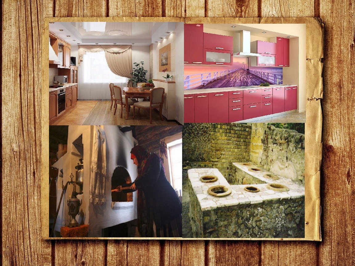 Средневековая Россия не знала слово кухня, ее тогда называли поварней, стряпущей или кашеварней. Слово кухня происходит от немецкого Küche «кюхе». Немцы в свою очередь заимствовали слово из латыни от слов coquo, что значит «варить, стряпать, готовить» и соquinа оно означало как отдельную комнату где готовили еду, так и поваренное искусство. К слову сказать в латинском языке есть еще одно слово переводимое как кухня — culina (кулина). Кроме кухни оно еще обозначает переносной очаг, жаровню, еду, стол, угощение. Как вы, наверное, уже догадались это предок нашего знакомого слова кулинария. Отдельные помещения для приготовления еды были только в богатых усадьбах и зажиточных крестьянских дворах. В крестьянских избах отдельной поварни не было и часто весь дом состоял из одной комнаты. Четверть дома занимала печь, которую использовали для отопления, приготовления еды, выпекания хлеба, и даже вентиляции. В одной комнате готовили пищу, ели и спали. Давным-давно это было.