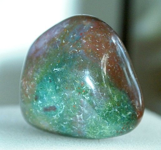 Гелиотроп – непрозрачная тёмно-зелёная разновидность халцедона с ярко-красными или жёлтыми пятнами окисленного гематита.